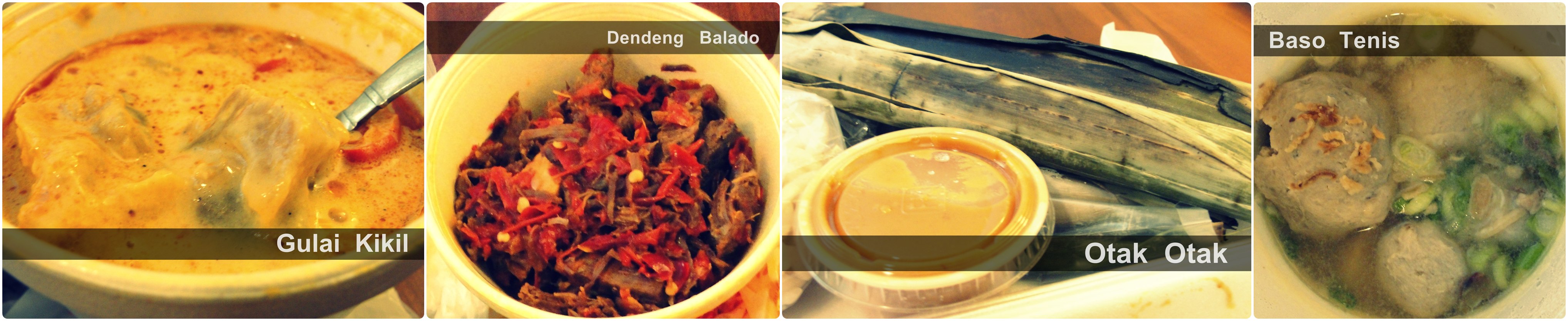 2. Para penjual makanannya pada aji mumpung ya. Ada yang jual es serut (es batu diserut) trus dituangin sirup, cuma segelas kecil doang, dihargain $2. Otak-otak 5 biji $10. Gulai kikil semangkok kecil $7 (tadinya malah gua dikasih cuma pake tempat yang pendek banget, paling cuma 1,5 cm tingginya. Gua sampe bengong, masa $7 cuma seemprit gitu? Tapi untungnya trus si Ibu nya ngeliat dan dia bilang kalo tempatnya salah. Jadilah dikasih mangkok styrofoam, yang mana ya gak gede-gede amat juga sih… tapi lumayan lah daripada tempat yang pertama). Pempek keriting $2.5 sebiji, pempek kapal selam $5 sebiji. Dendeng balado $3 per porsi. Pepes tahu $3. Bacang ketan $2. Sate ayam (7 tusuk plus lontong) $5 (yang ini sebenernya harganya not bad sih ya). Dan baso tenis (isi 2 baso gede, 2 baso kecil, dan 1 tahu) $6.5.