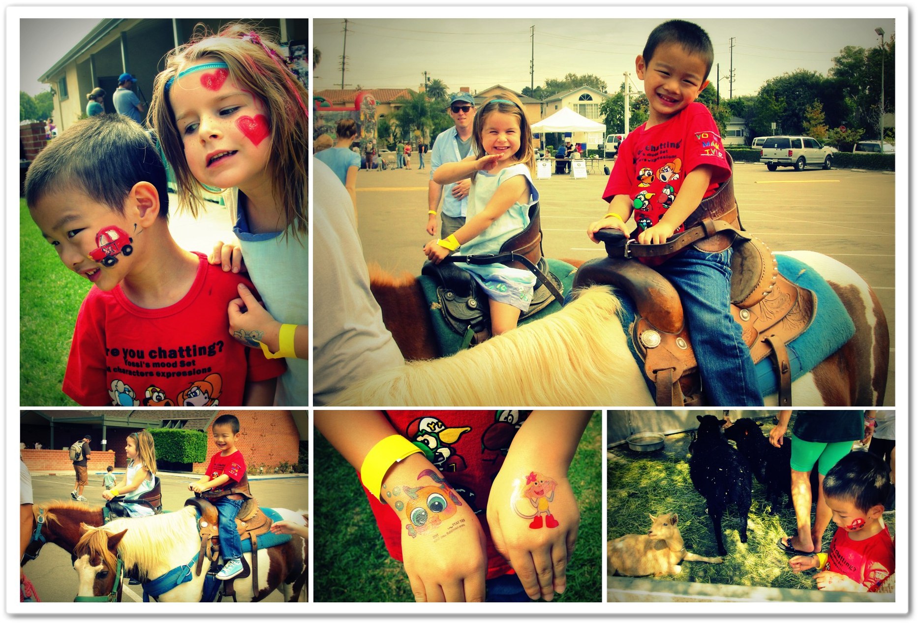 Ternyata lumayan juga lho Fall Festival ini. Harga masuknya $6 per orang udah termasuk makan siang (pilihan hot dog/burger plus chips dan minum). Dan semua permainan udah gak perlu bayar lagi. Walaupun gak banyak permainannya tapi cukup seru lah buat anak-anak kecil. Di situ ada bumpy house, pony rides, petting zoo, tattoos, dan face painting. Trus sempet ada truk pemadam kebakaran juga mangkal disono dan anak-anak boleh naik-naik masuk ke truk nya. Trus pas setelah jam makan siang ada live music juga.