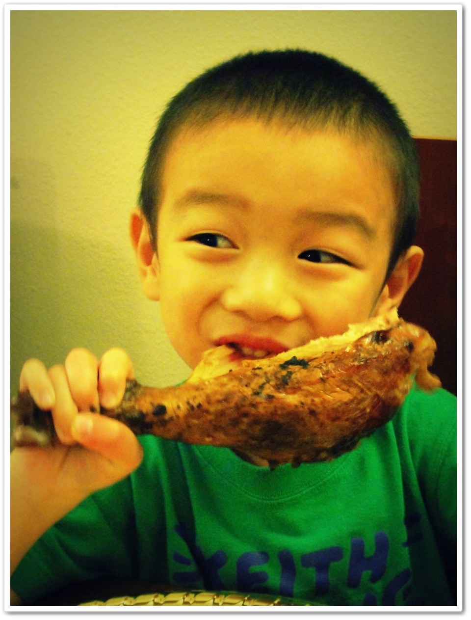 turkeynya gede banget ya, sama tangannya andrew aja masih gedean paha si turkey. hahaha….