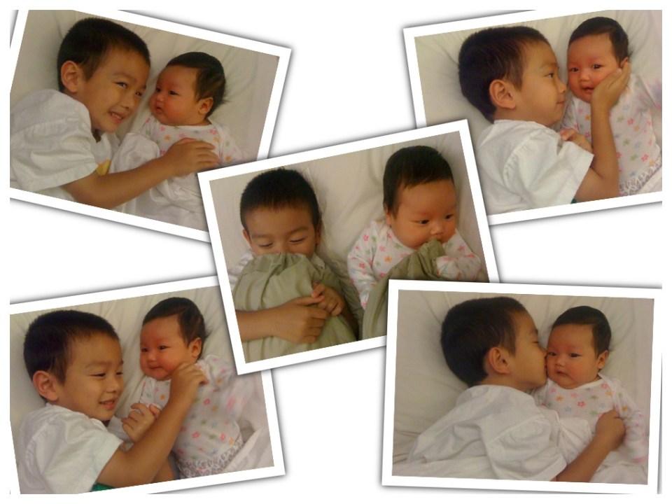 Trus ini ada foto-foto pas Andrew mau tidur. Jadi sekarang rutinitasnya, tiap sebelum tidur, Andrew minta kiss good night ama Emma. Jadi Emma kita taruh di ranjang Andrew buat di kiss ama Andrew. Lucu deh ngeliat ini anak berduaan. Biasanya selalu si Emma awalnya seneng-seneng aja di-kiss-kiss ama koko nya, sampe beberapa lama trus baru dia protes. Hehehe. Yang lucu waktu itu, si Andrew udah gulingan, gua kasih guling satu lagi ke Emma… eh ama Emma malah dimakan gulingnya. Hahaha. 😛