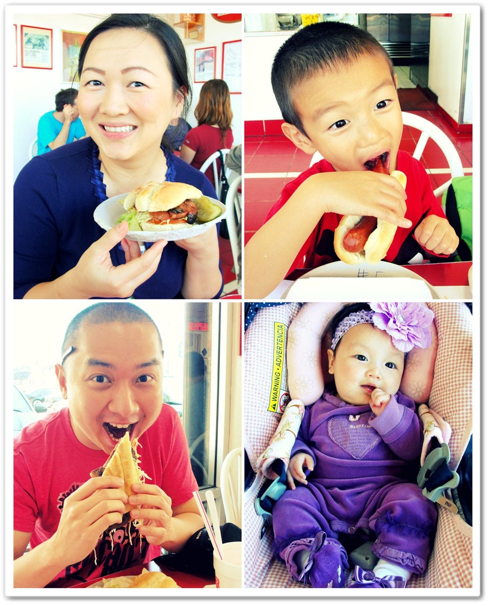 Andrew makan hotdog, Esther makan grilled polish sausage, gua makan NY steak sandwich, sementara Emma makan… tangannya! Huahaha. 😛 Kasian si Emma sampe ngeces-ngeces dia ngeliatin kita makan… 😛