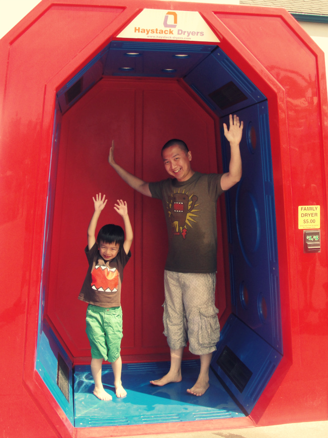 Trus si Andrew yang awalnya takut-takut, akhirnya dia jadi suka main sliding nya… Dan gua sempet nemenin Andrew main di lazy river nya juga, yang mana hasilnya ya jelas celana gua basah abis! Mana gua gak bawa ganti kan… 😛 Tapi jangan khawatir, ada mesin dryer buat ngeringin orang disono! Gua gak tau kalo di Indo ada gak ya mesin model gini. Jadi intinya ya kayak mesin hand dryer kalo di toilet-toilet gitu, tapi yang ini orangnya bisa masuk dan dryer nya untuk seluruh badan.
