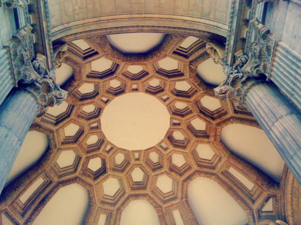 Esther nemu foto ini di iPhone nya yang mana ternyata itu Andrew yang motret pas kita ke Palace of Fine Arts. Amazed juga kita ngeliatnya kok dia bisa kepikir motret kubahnya ini. Lagian kubahnya itu tinggi banget lho, jadi dia pasti kudu nge-zoom pas motretnya. Bagus juga ya…