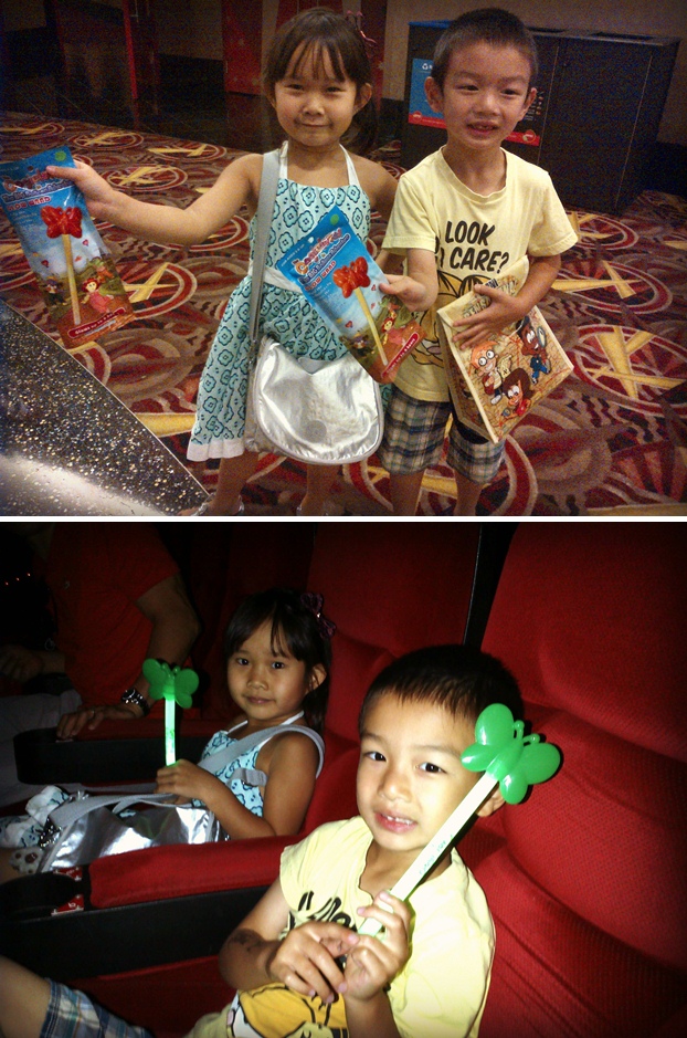 Hari Minggu pagi, kita nyoba lagi untuk nonton Oogieloves. Kali ini dapet tiketnya. Dan ternyata setiap anak kecil yang nonton dikasih light wand buat dimainin pas nonton. Emang film Oogieloves ini ceritanya film interaktif, jadi selama nonton, anak-anak boleh berdiri, boleh nari, boleh nyanyi, boleh terserah deh ngapain aja. Gak mesti duduk diem gitu.