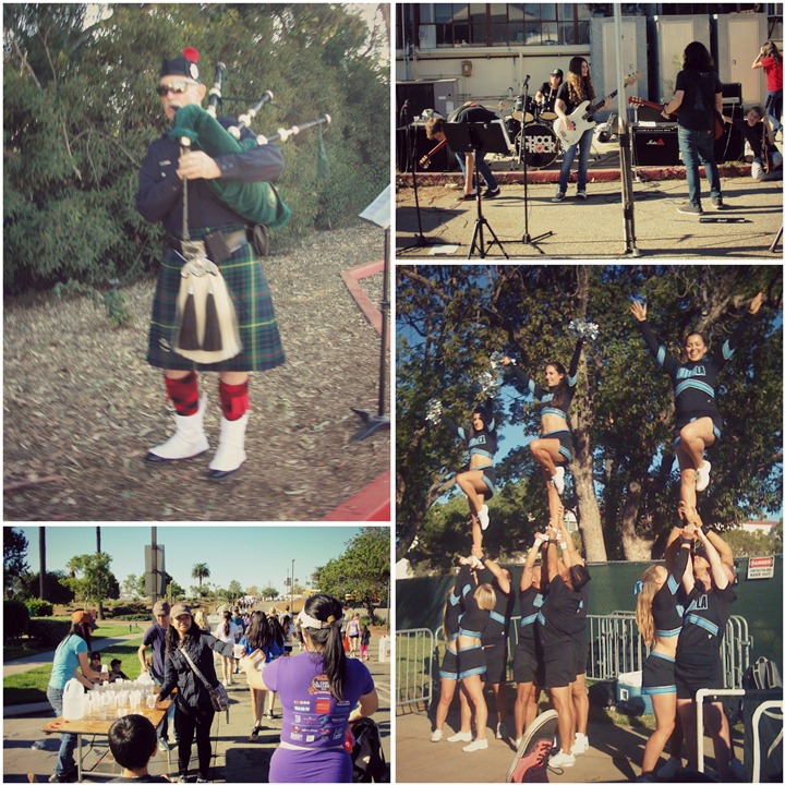 4. Yang ngikut race nya banyak banget. Ribuan orang. Segala usia ada disana. Yang bawa-bawa stroller juga banyak. Yang lucu juga ada aja yang niat pake kostum berhubung udah deket Halloween kan ya. Pas kita baru mulai race ada cheerleaders yang ngasih semangat, trus jalan berapa jauh ada kakek-kakek yang main bagpipe, dan terakhir ada anak-anak remaja yang main band. Biar kita gak bosen kali ya jadi dikasih hiburan. 😀 Selama 5 km itu juga ada 2 titik dimana kita dikasih minum dan disediain WC buat yang beser. 😛