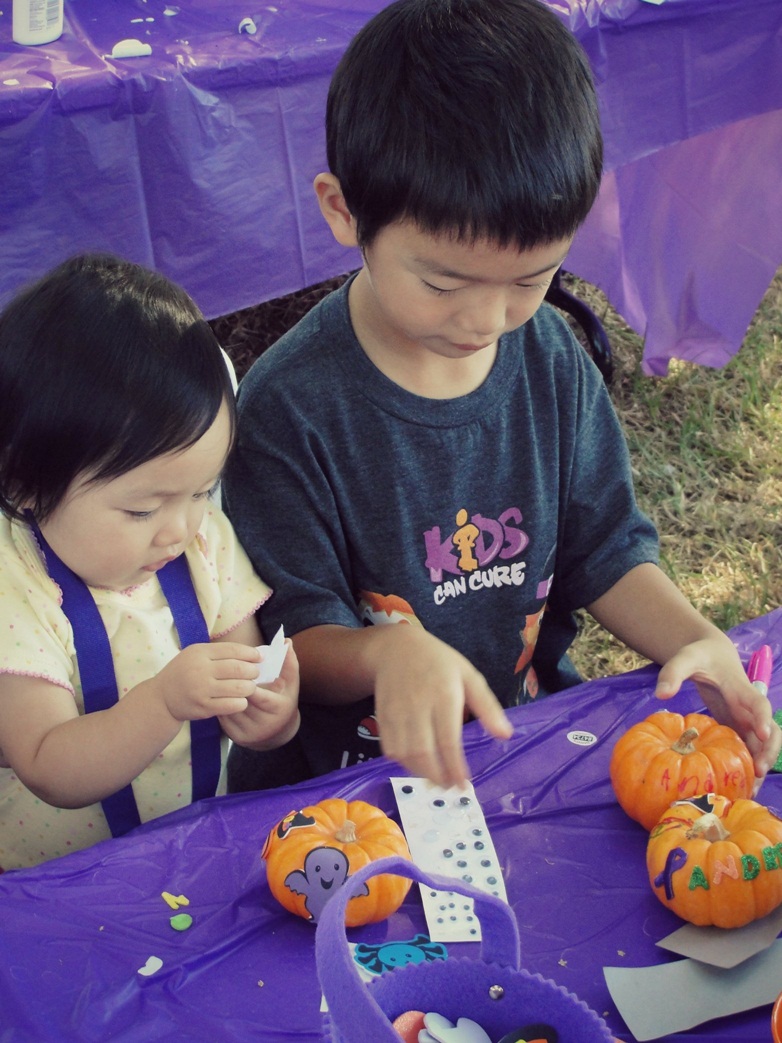 8. Setelah kelar race nya disana ada expo. Disediain minuman, buah-buahan, dan yogurt (pokoknya yang sehat-sehat dah, padahal kan gua ngarepnya ada hotdog atau burger gitu.. :P). Trus ada area buat anak-anak dimana ada bouncy house dan tempat art & craft. Bisa mewarnai, menggambar, dan menghias pumpkin kecil-kecil.