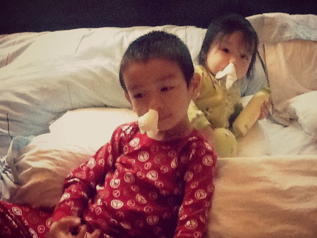 Waktu foto Andrew lagi mimisan ini (si Emma sih sebenernya gak mimisan, cuma dia solidaritas aja ikut-ikutan minta dipakein tisu di idungnya) gua post di Twitter, sempet terjadi percakapan sama beberapa temen tentang anak mimisan. Dan ada yang tanya juga kalo anak mimisan mesti diapain secara dia dulu gak pernah mimisan.