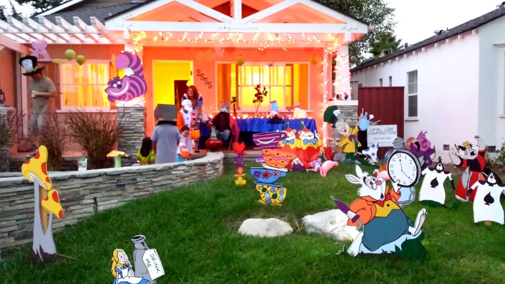 Atau yang lucu-lucuan kayak rumah bertema Alice In Wonderland ini… Rumah Alice ini keren banget lho. Di pintu garasi nya sampe dipasangin layar tancep muterin film Alice In Wonderland pula! 😀 Trus yang punya rumah dandan jadi Alice dan Mad Hatter.