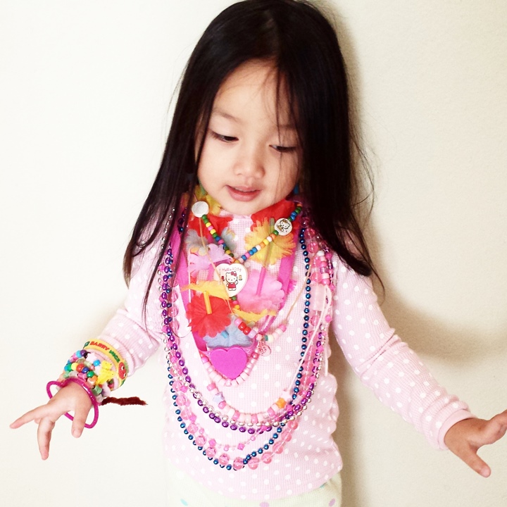 Masih tentang genit, si Emma suka banget pake kalung. Eh sekali waktu dia ngeliat kalungnya Esther yang pendant nya diamond, si Emma minta pake. Kita kan takut ya kalo ntar sampe ilang, tapi dia ngotot banget gak mau pake kalungnya sendiri tapi cuma mau pake kalungnya Esther. Kecil-kecil udah tau barang bagus… Emang bener diamond is a girl’s best friend kali ya… Hahaha.