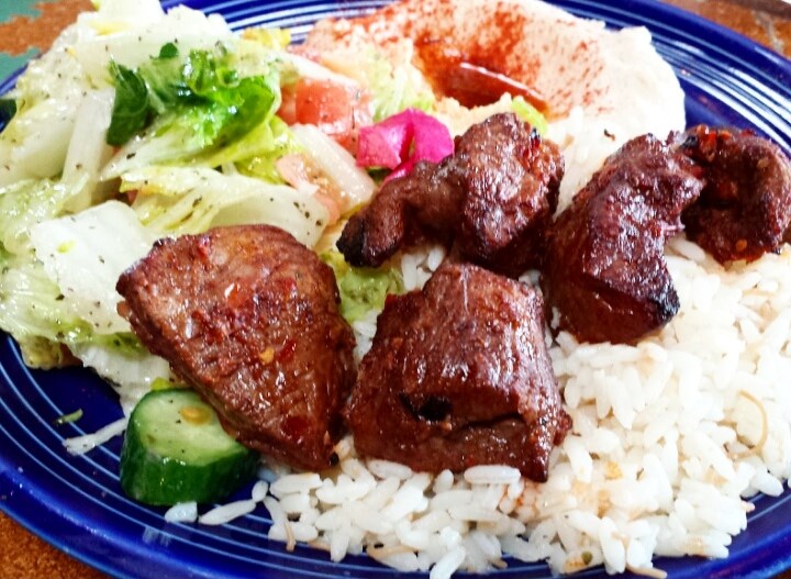 Trus perayaan bareng temen-temen kantor, hari Jumat kemaren kita pergi makan siang bareng di Sunnin. Restoran Lebanon. Baru kali ini gua makan di restoran Lebanon. Mirip-mirip Persian/Mediterranean sih menu-menunya. Kita mesen beberapa appetizer buat sharing dimana salah satunya adalah cauliflower yang digoreng dan asli enak banget! Gua padahal biasanya gak suka lho cauliflower, tapi kok digoreng begini jadi enak ya. Hahaha. Trus buat entrée nya gua mesen lamb kebab yang mana juga enak banget! 🙂