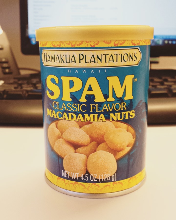 Kenapa tiba-tiba gua ngomongin Spam, ini gara-gara kemaren ada temen kantor yang baru pulang liburan dari Hawaii, dia bilang ke gua suruh nyamperin ke kantor nya karena ada oleh-oleh buat gua yang mana gua harus makan disana karena staf dia semuanya pada mau ngeliat gua makan. Aneh banget kan? 😛