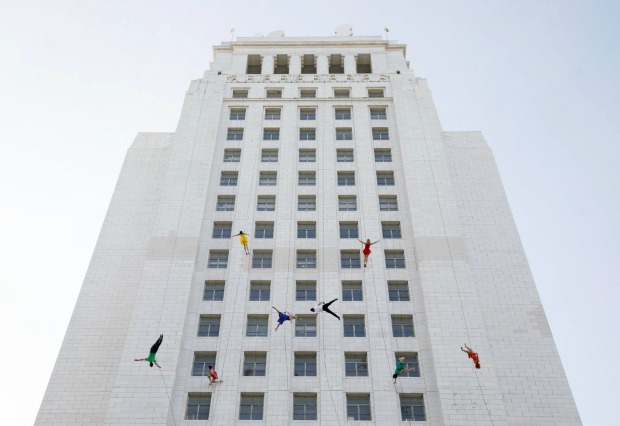 Walaupun kita gak sampe diliburin buat pergi ke balai kota buat ngeliat acaranya tapi di kantor kita dikirimin email buat ngeliat penari-penari aerial yang nari di gedung balai kota pake lagu-lagu nya La La Land ini.