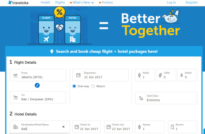 Emang enak ya jaman sekarang, banyak penerbangan dengan harga yang terjangkau. Pilihannya juga banyak pula! Mau beli-beli tiket pesawat atau booking hotel pun gampang banget. Tinggal klak-klik-klak-klik di website nya Traveloka (www.traveloka.com) langsung kelar. Gak usah nyetir dulu ke kantor travel agent, gak perlu ribet-ribet ngomong di telpon. Praktis banget, bahkan bisa dilakukan sambil tidur-tiduran. 😛 Udah gitu bisa langsung keluar pilihan-pilihannya pula. Masukin tanggal kapan kita mau liburannya, masukin budget, langsung keluar pilihan hotel-hotelnya.