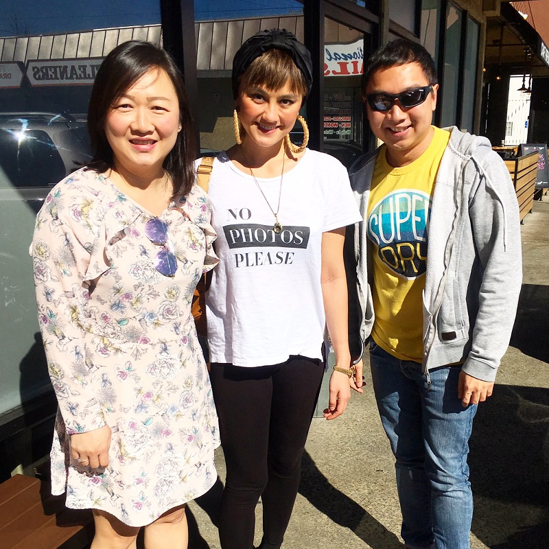 Ramah orangnya, sampe nanya enakan fotonya dimana secara kita lagi di parkiran. Nyari tempat yang lumayan mumpuni buat poto secara matahari lagi terik dan salah satu temennya Agnes dengan baiknya langsung nawarin mau motretin. Trus gua bilang makasih, kita balik ke mobil, Agnes masuk ke restoran. Eh sempet basa basi dikit sih, gua tanya “sekarang jadi di LA terus ya?” trus dijawab sama Agnes “iya”.