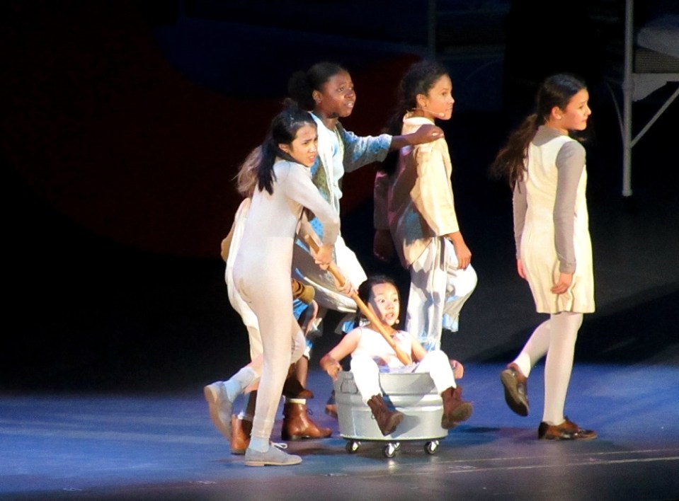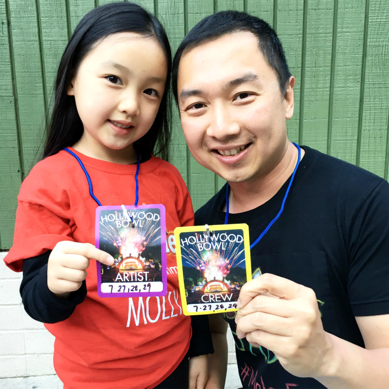 2. Pas tech week hari pertama juga pertama kalinya gua ngeliat si Emma perform. Selama 2 minggu latian itu kita gak boleh nonton sama sekali! Jadi selama anak-anak latian ya kita para ortu nya ngobrol doang. Hahaha. Sempet sekali sih pas press day tuh ortu nya boleh nonton tapi mereka cuma perform 1 lagu doang. Esther yang nonton dan si Esther sampe nangis bombay. Bangga banget ngeliat si Emma yang kecil banget gitu bisa nari dan acting bagus banget! 😀 Gua pas pertama kali nonton juga rasanya bangga luar biasa tapi gak sampe nangis sih. Mungkin karena pas tech week mereka latiannya dipotong-potong dan diulang-ulang karena ini baru pertama kalinya mereka staging di panggungnya Hollywood Bowl jadi mereka lebih mentingin ngeliat transisi nya dari 1 adegan ke adegan lain.