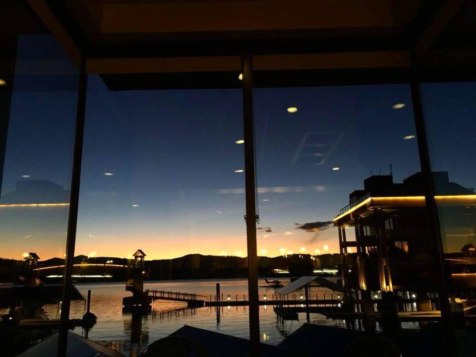 Kita sore itu ya jalan-jalan aja di sekitaran hotel trus makan malem di restoran hotel yang mana full kaca jadi bisa ngeliat sunset di danaunya gitu. Lucu deh di restorannya pas udah mau sunset, lampunya dimatiin semua biar kita bisa bener-bener nikmati sunset nya. Keren banget… 😀