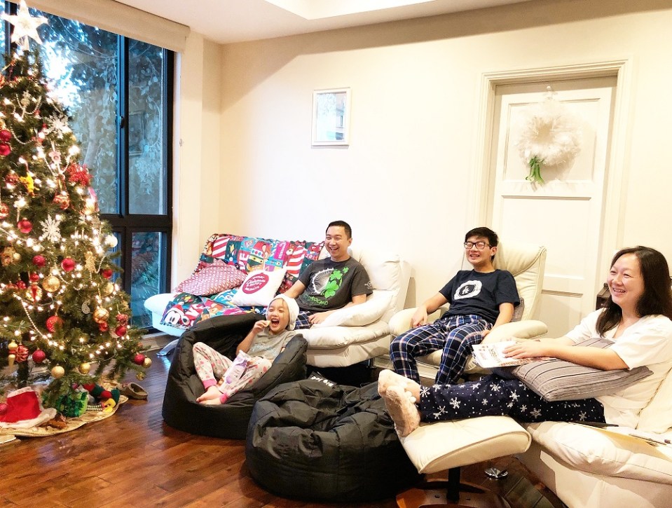 Btw, pulang dari LA Kings kita di rumah aja nonton Home Alone. Gua sempetin fotoin pas kita nonton. Seneng aja ngeliatnya. Walaupun kita cuma pake baju rumah, si Emma bahkan rambutnya masih pake anduk, tapi gua seneng liat foto ini… Bikin gua tambah bersyukur banget punya keluarga ini! 🙂