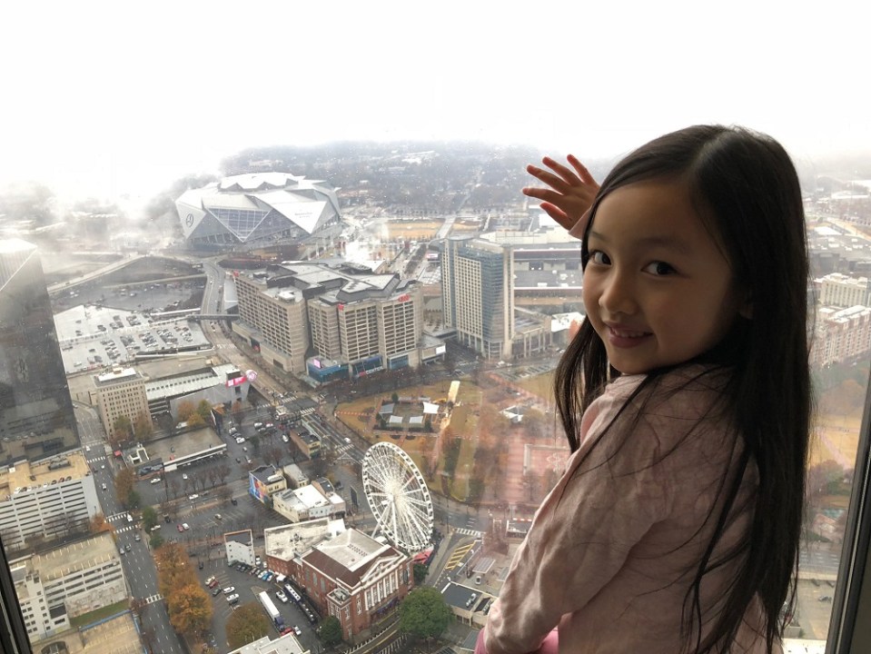 Hotel ini adalah salah satu bangunan tertinggi di Atlanta (73 lantai) dan di lantai paling atas ada restoran yang full kaca jadi kita bisa liat Atlanta dari atas. Kita sempet makan disini sekali pas Christmas brunch soalnya si Emma pengen ketemu Santa Claus. 😛