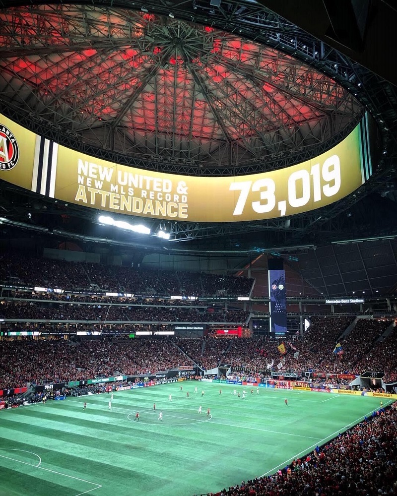 Mercedes-Benz Stadium ini adalah stadium baru yang baru dibuka tahun 2017. MLS Cup 2018 diadain disini, begitu juga Super Bowl 2019. Karena baru jadi stadium nya keren banget dan gede banget.