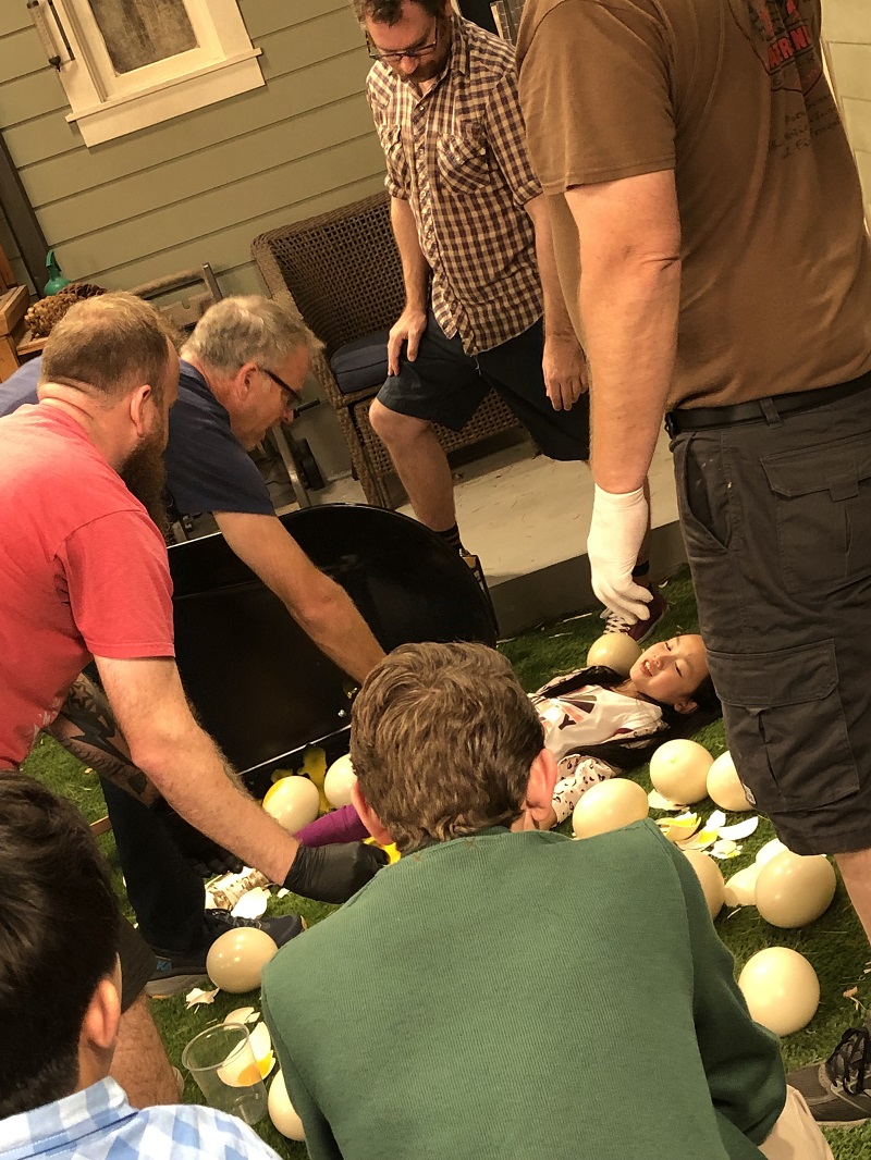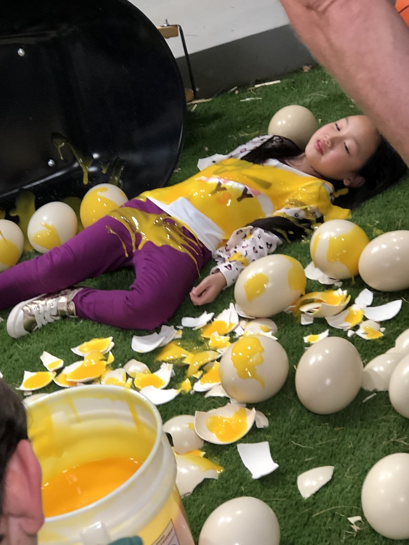 <adegan terakhir yang di shoot tuh adegan Emma jatuh di atas telor-telor ini. Asli messy banget, jadi abis itu mesti cepet-cepet mandi dan keramas di trailer. Mana udah malem dan dingin pula. Tapi untungnya team produksinya selalu sigap dengan banyak handuk gede dan di trailer nya udah siap dengan sabun dan shampoo>