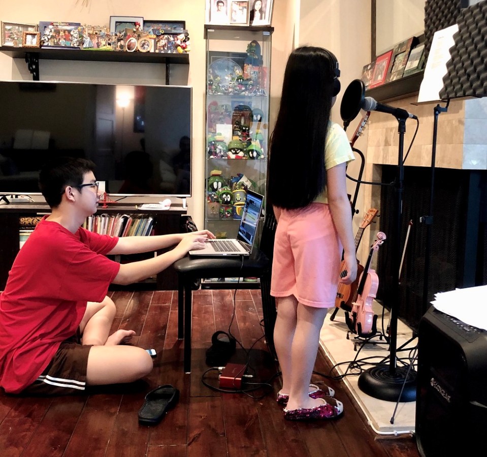 Okay, setelah si Emma udah belajar lagunya, langsung suruh Andrew siapin alat rekaman. Belakangan ini emang gua suruh si Andrew belajar buat recording. Gua beli sound card (audio interface) nya Focusrite, jadi pas ngerekam suaranya jadi lebih bagus dan jernih. Kalo biasa kan ngerekam si Emma nyanyi langsung aja pake video di HP ya. Belakangan ini kita rekam suaranya dulu terpisah trus baru bikin video nya. Jadi suaranya lebih jernih.