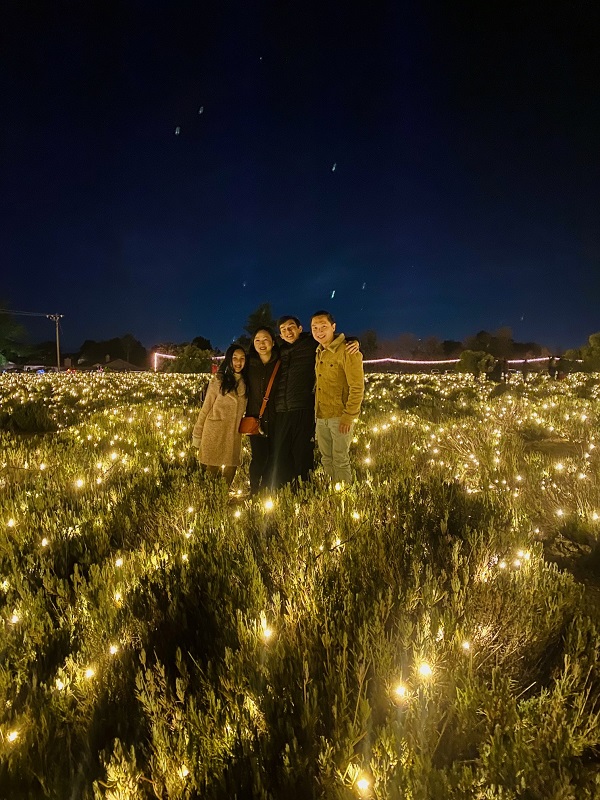 Anyway highlight hari itu adalah pergi ke 123 Farm. Lumayan jauh tempatnya, 1.5 jam nyetir dari tempat kita. Kita pergi makan pho dulu karena lagi dingin banget jadi makan pho panas-panas tuh cocok banget ya, trus baru jalan ke 123 Farm. 123 Farm ini adalah perkebunan lavender tapi kalo lagi holidays gini mereka ada Christmas Nights Festival jadi seluruh perkebunan yang luas banget itu dikasih lampu-lampu. Cakep banget.